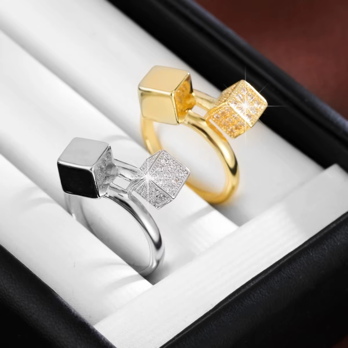 Exprimez votre style moderne et audacieux avec la Bague Cube Éclat, un bijou unique qui revisite la géométrie en joaillerie. Son motif cubique incrusté de diamants artificiels lui confère un éclat raffiné et contemporain, parfait pour celles qui recherchent un bijou à la fois tendance et sophistiqué.