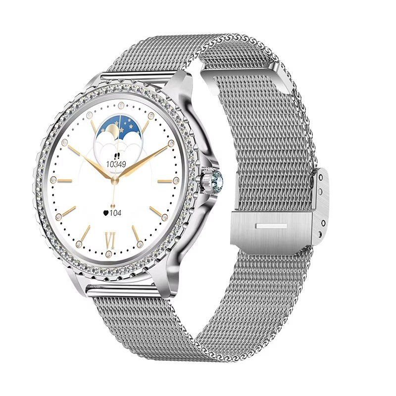 Découvrez la montre SALORIS Élégance, un concentré de technologie et de style pour les femmes modernes qui souhaitent allier fonctionnalité intelligente et esthétique luxueuse. Disponible en Gold ou Argent, cette montre se décline en version diamant intégral pour un effet joaillerie éblouissant ou en maille de fer pour un look sophistiqué et contemporain.