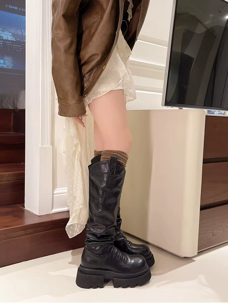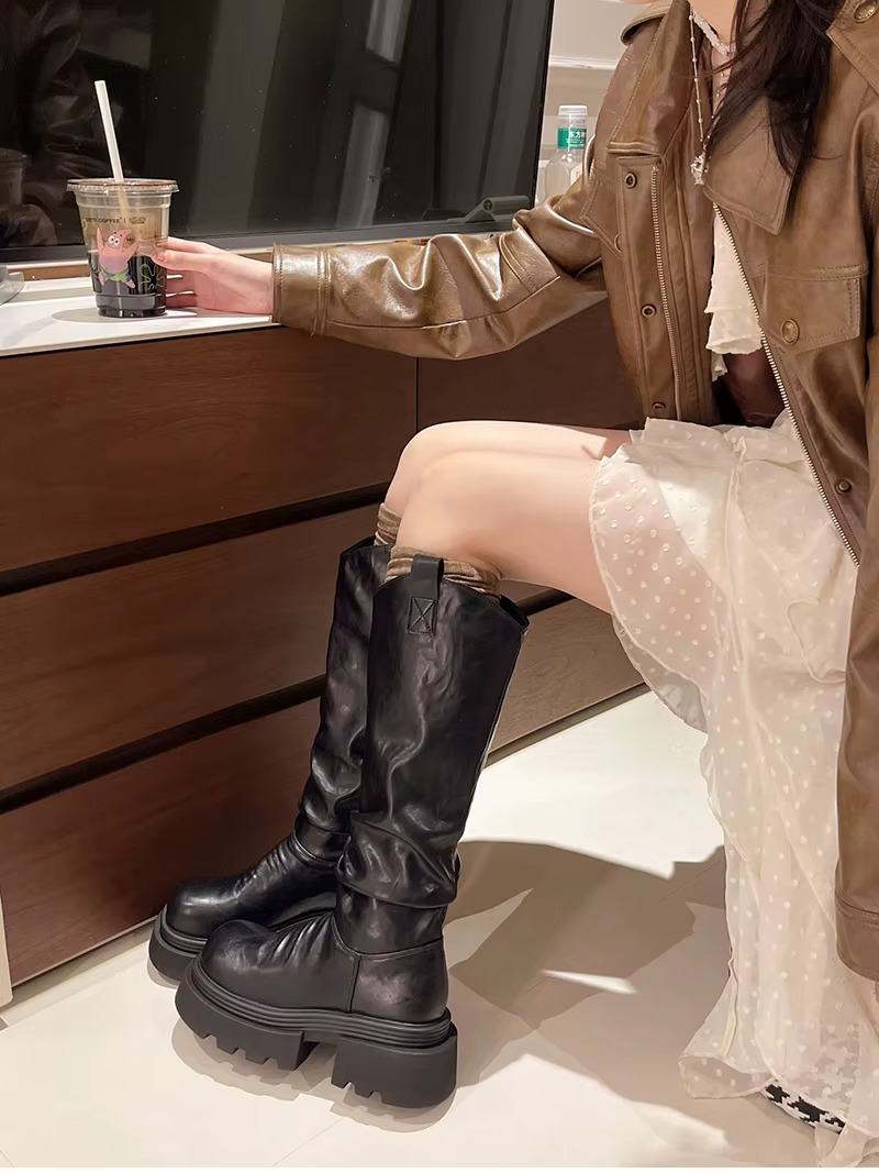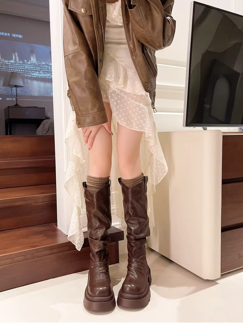 Hauteur : Bottes hautes couvrant le mollet pour une allure élégante et féminine.