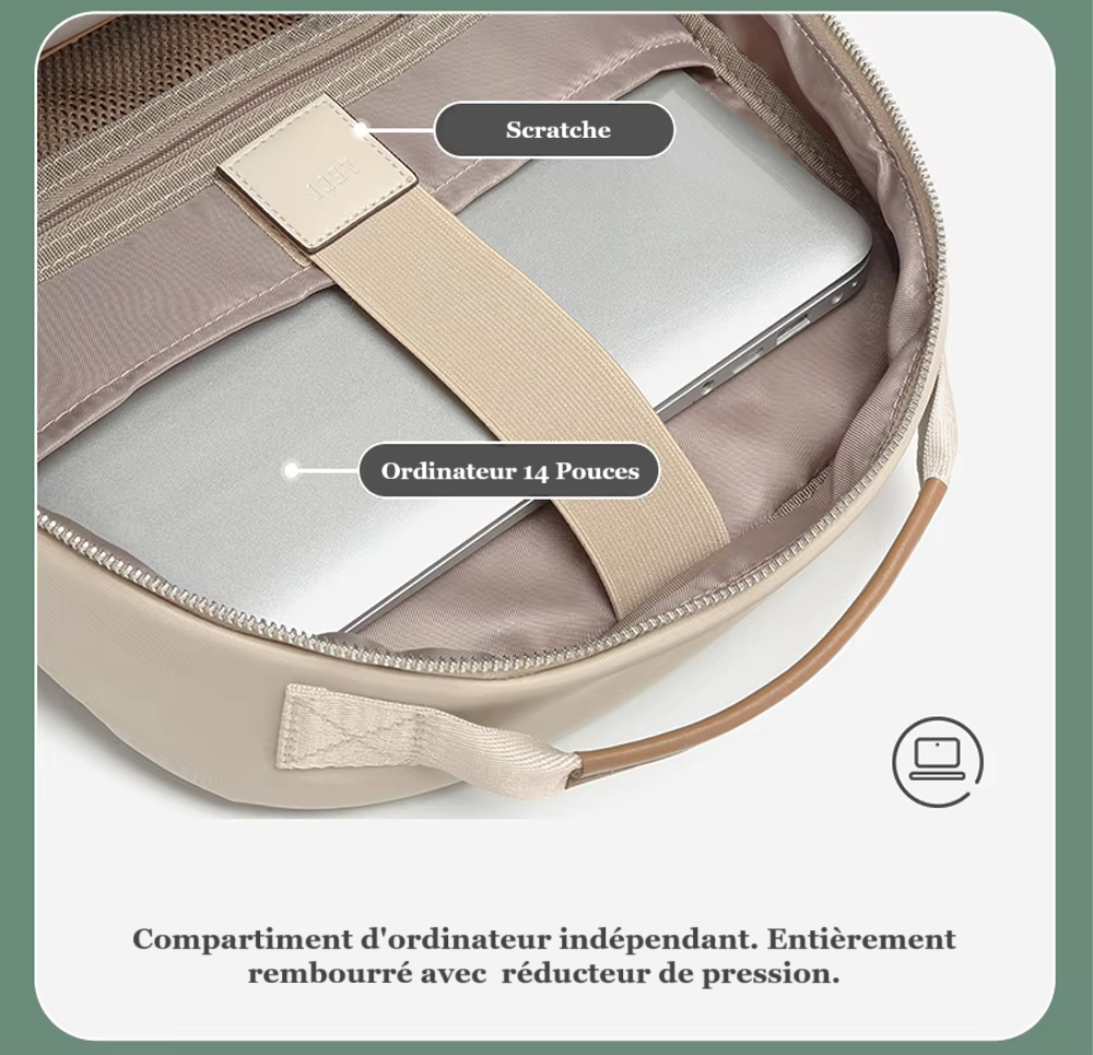 Organisation intelligente : Compartiments multiples, poche pour ordinateur et emplacement dédié à vos essentiels.