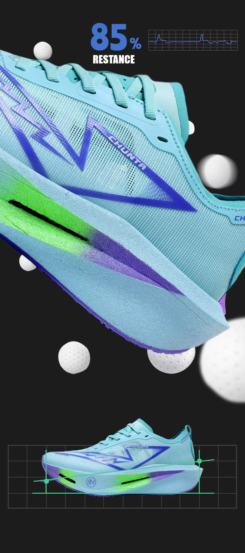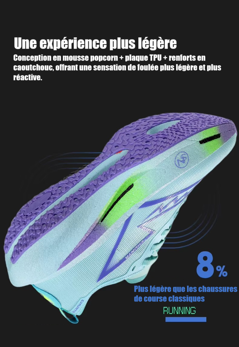 Élan naturel : la semelle haute dynamise votre foulée et réduit la fatigue musculaire.